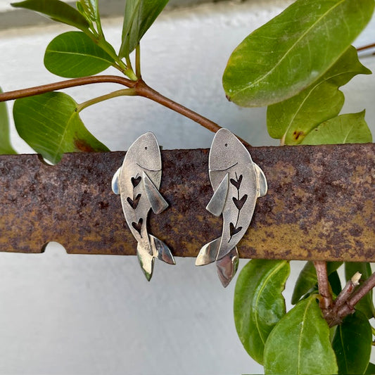 Sterling silver textured heart leaf earrings with 9ct Yellow gold accents