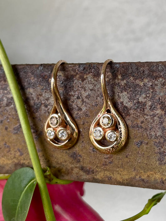 9ct Rose Gold Diamond & Chocolate Diamond Drop Earrings