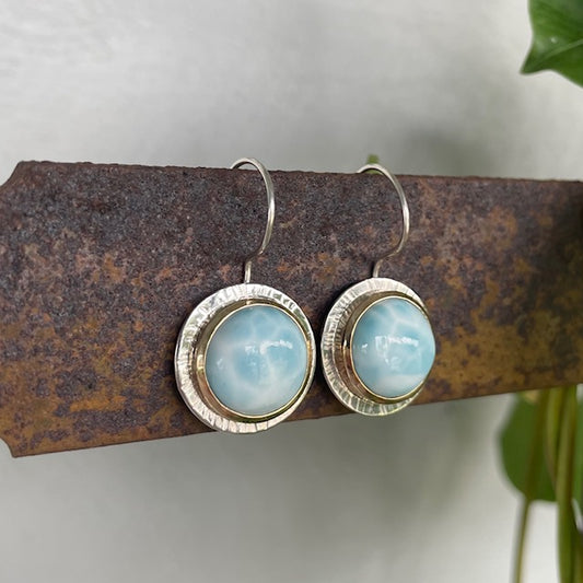 Sterling Silver and 9ct Yellow gold Larimar Earrings