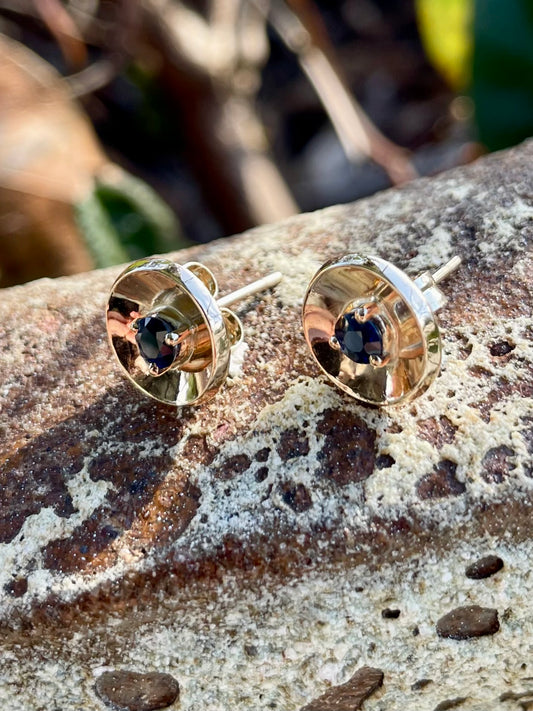 9ct Yellow Gold Blue Sapphire Stud Earrings