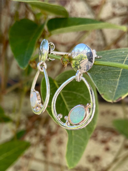 Sterling Silver & 9ct Rose Gold Opal Abstract Earrings