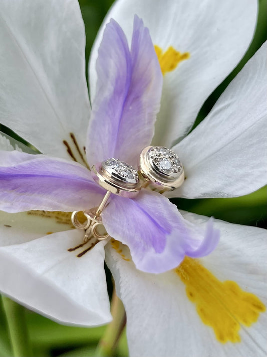 9ct Rose Gold Aquamarine & Diamond Disc Stud Earrings