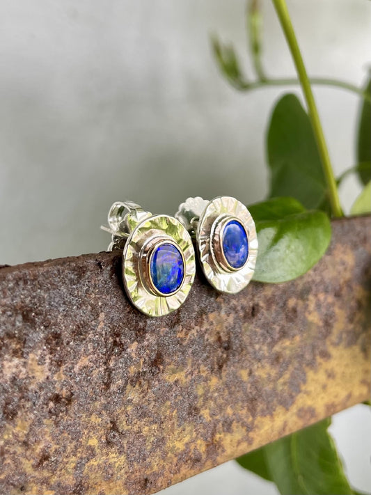 Sterling Silver & 9ct Yellow Gold Opal Stud Earrings