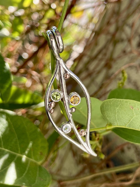 Sterling Silver & 9ct Rose Gold Multi-Stone Leaf Pendant