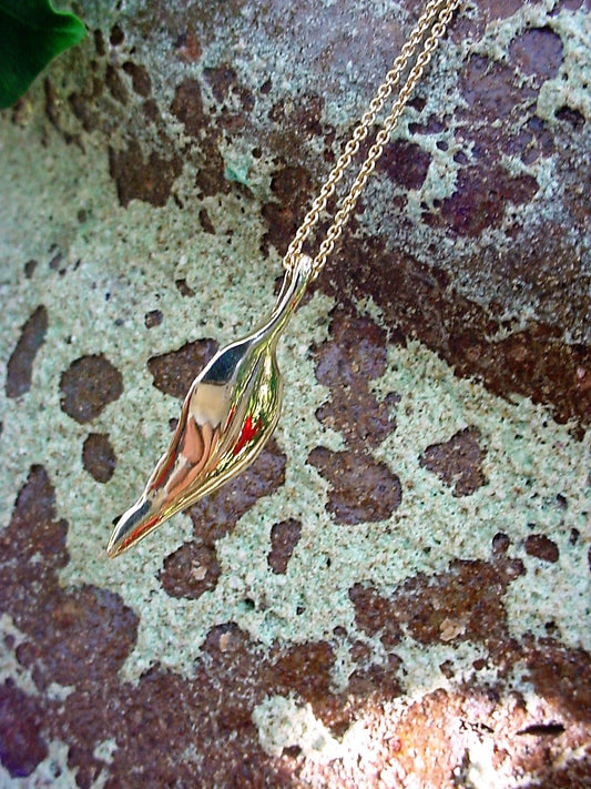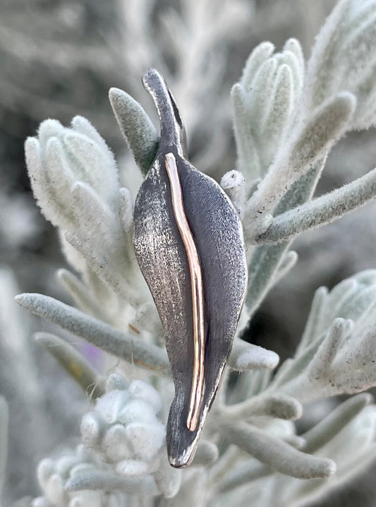 Oxidised Sterling Silver & 9ct Rose Gold 'Gum leaf' Pendant