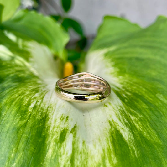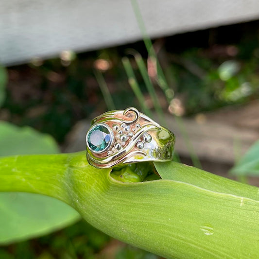 Sterling Silver Tourmaline with 9ct yellow gold wire work on a wide band Ring