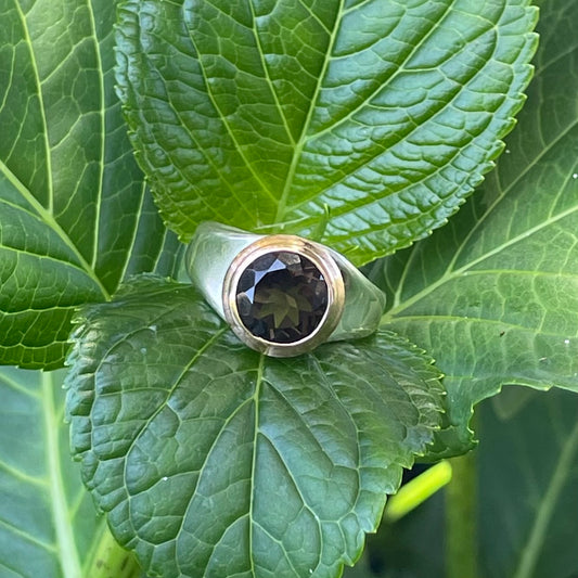 Sterling Silver and 9ct Rose Gold Smokey Quartz Ring