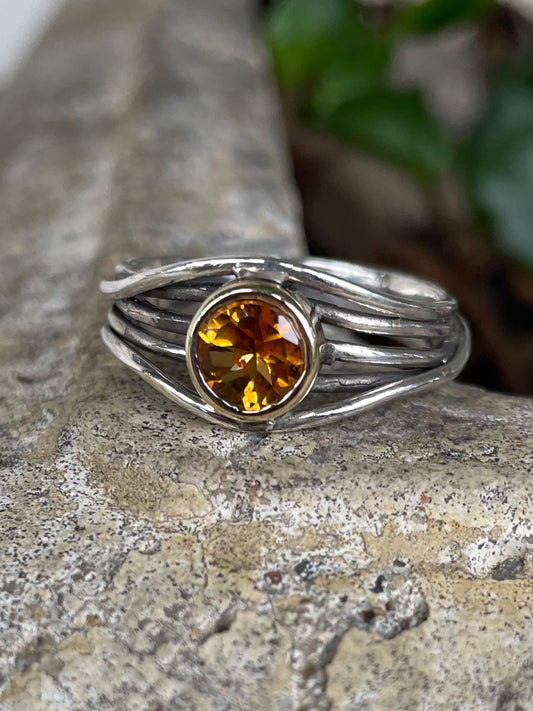 9ct Yellow Gold Emerald and Diamond Wave Ring