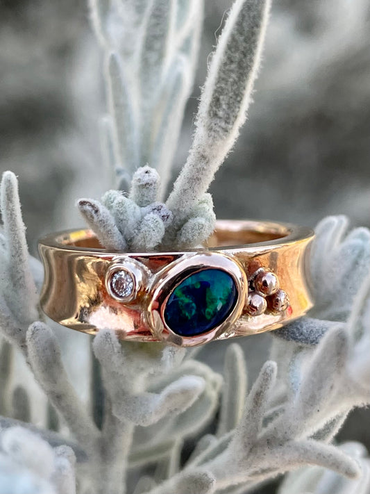 Sold out9ct Rose Gold Opal and Diamond Ring