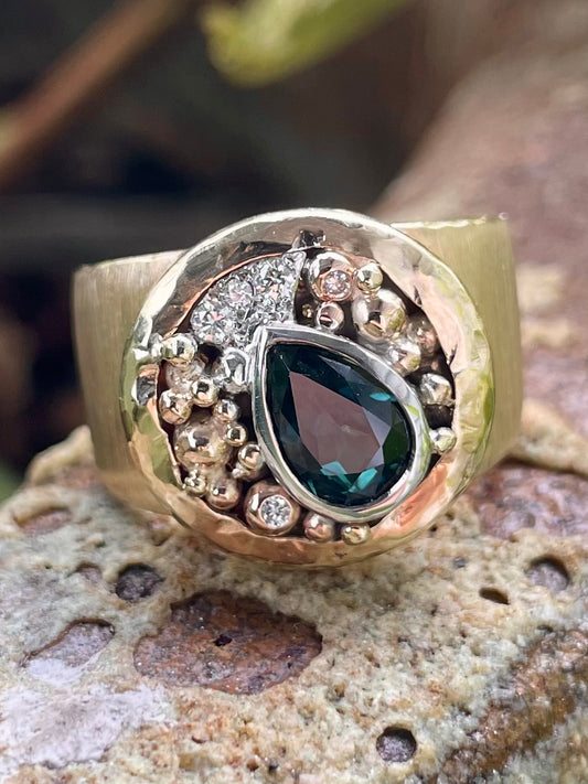 9ct Yellow & White Gold Parti Sapphire & Diamond Ring
