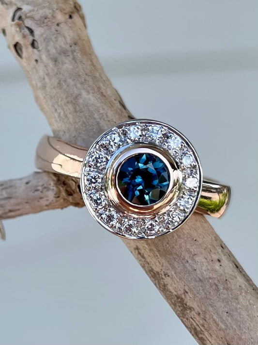 9ct Rose & White Gold ‘Halo’ style Sapphire & Diamond Ring