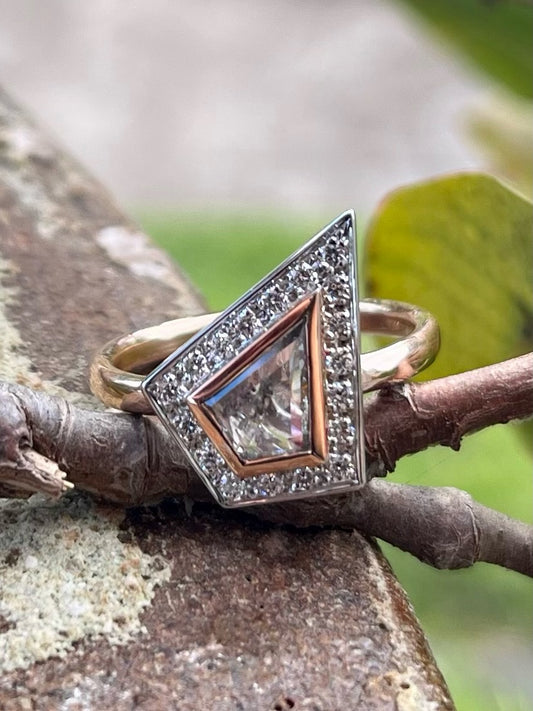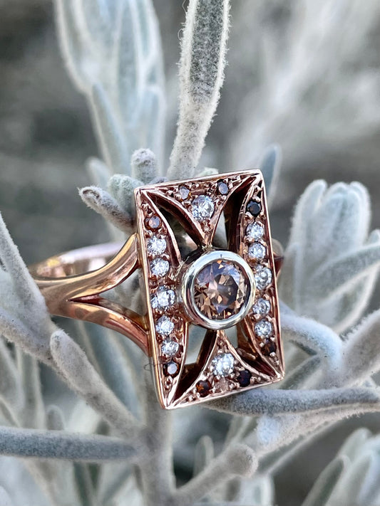 9ct Rose & White Gold ACD, Champagne & White Diamond ‘Art Deco’ Ring