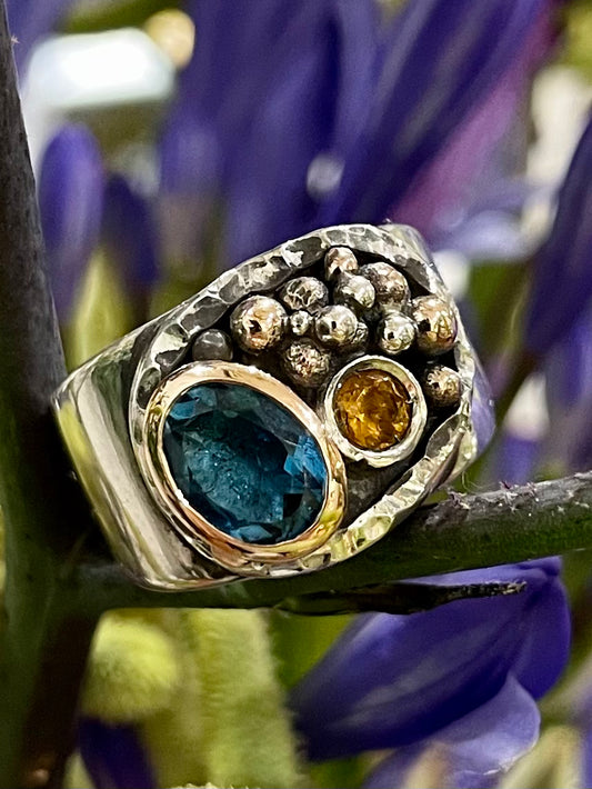 Sterling Silver 9ct Rose gold London Blue Topaz, Citrine