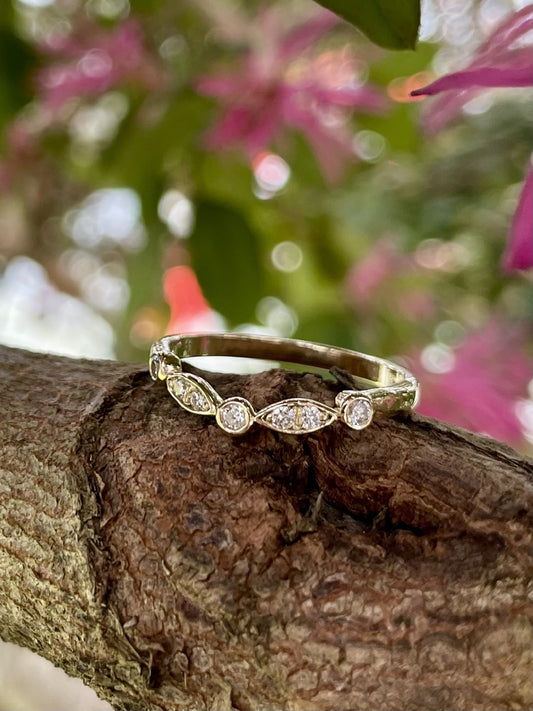 9ct Rose/White Gold Diamond Ball Wave Ring