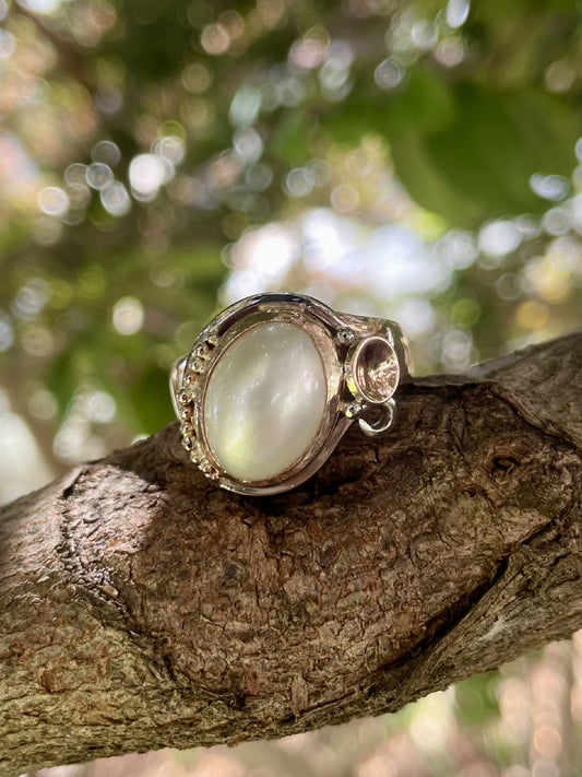 9ct Rose & White Gold Mabe Pearl 'Deco' Ring