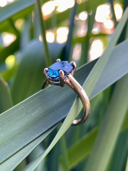Sterling Silver Ring with 9ct Yellow & Rose Gold bezel set Topaz