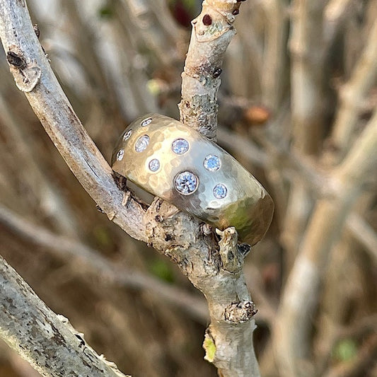 9ct Rose Gold Wide Band Diamond Set Ball Ring