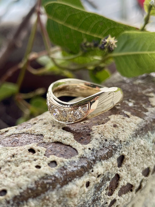 Sold out9ct Yellow Gold Curved Diamond Ring