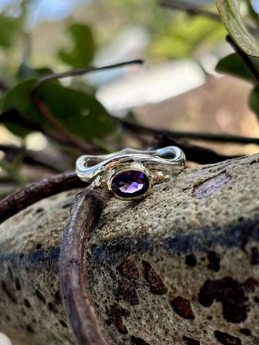 Sterling Silver & 9ct Yellow Gold Curved Amethyst Ring