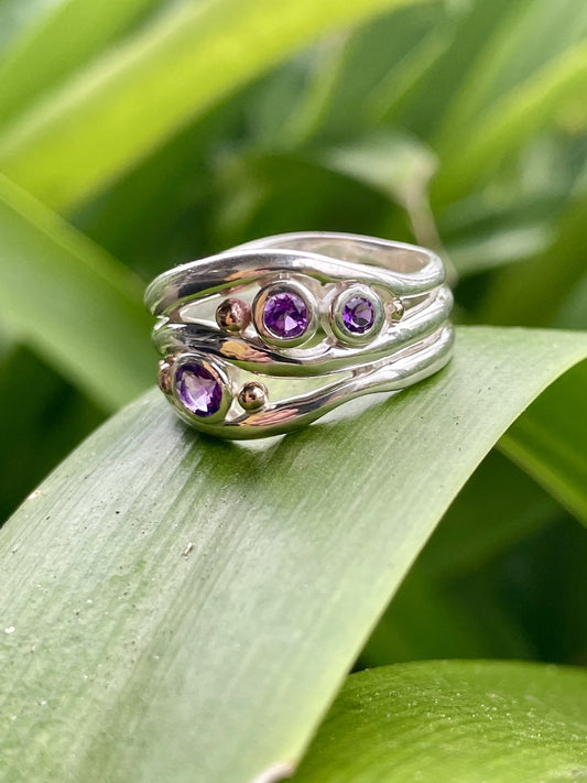 Sterling Silver & 9ct Rose Gold Amethyst Wave Ring