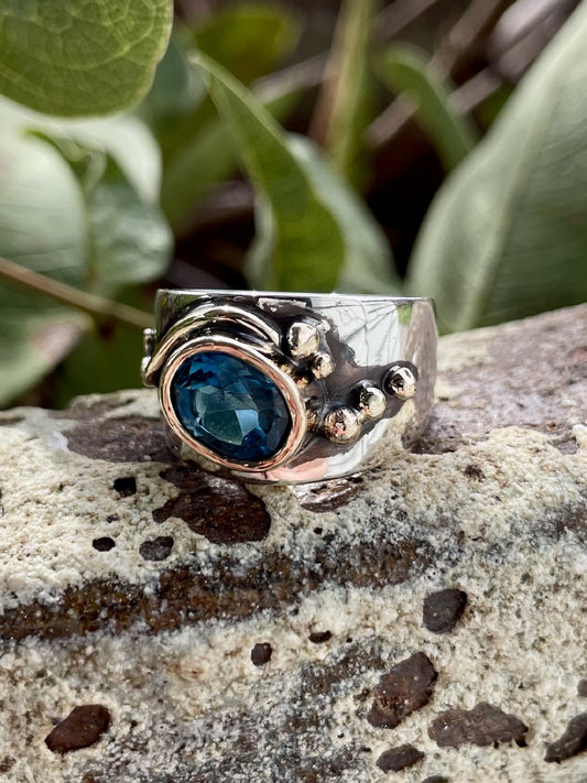 Sterling Silver & 9ct Yellow Gold Blue Topaz Wave Ring