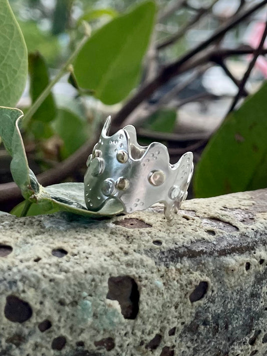 Sterling Silver & 9ct Yellow Gold Wavy Dot Ring
