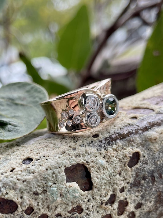9ct Rose/White/Yellow Gold Parti Sapphire & Diamond Ring
