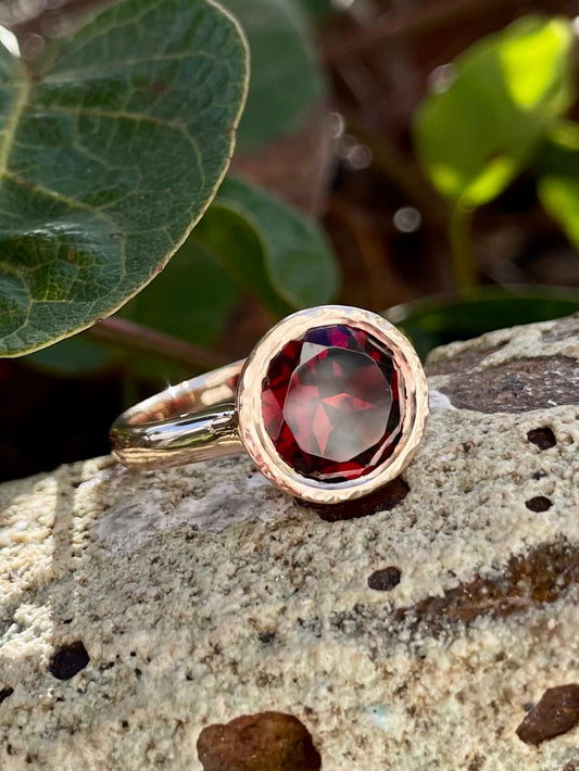 Sold out9ct Rose Gold Bezel-Set Garnet Ring