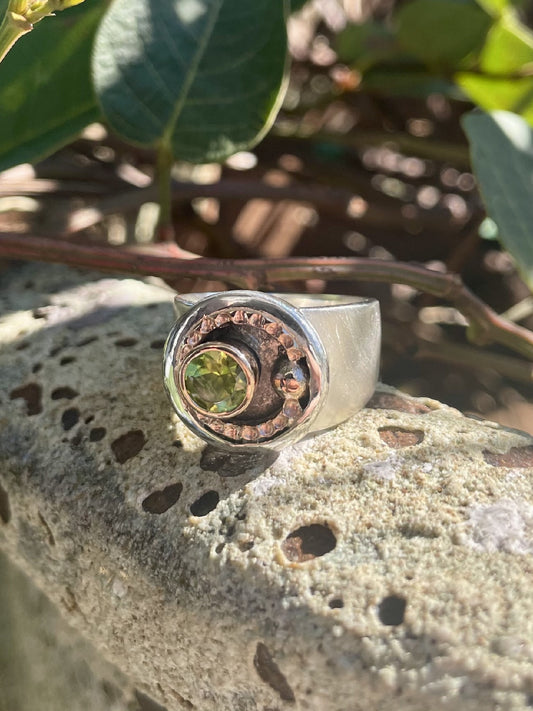 Sterling Silver & 9ct Rose Gold Peridot Ring