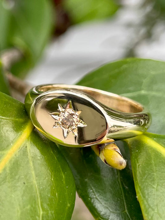 9ct Yellow Gold Star-set Chocolate Diamond Signet Ring