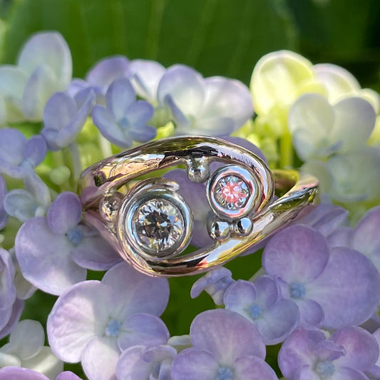 9ct Rose gold Australian Chocolate and white diamond swirl ring