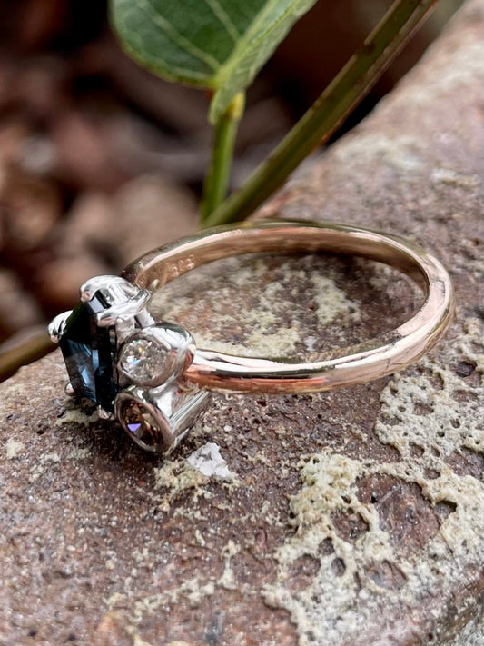 9ct Rose gold, Parti Sapphire and diamond molten style ring