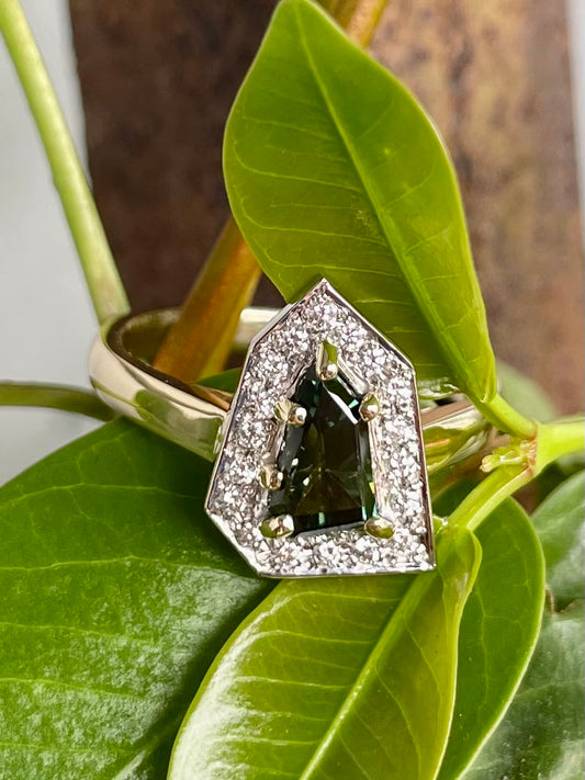 9ct Yellow/White Gold Abstract Sapphire & Diamond Ring